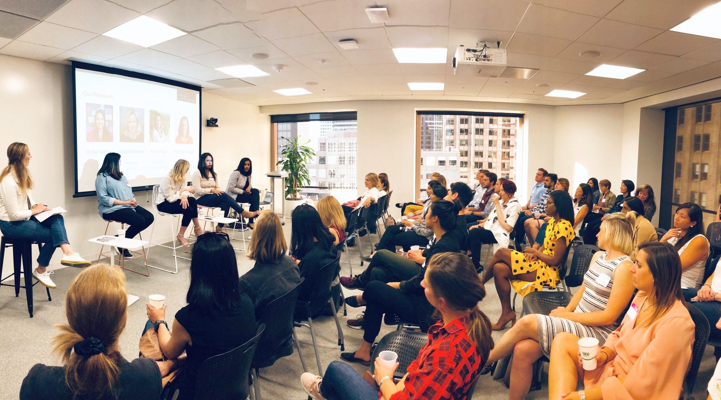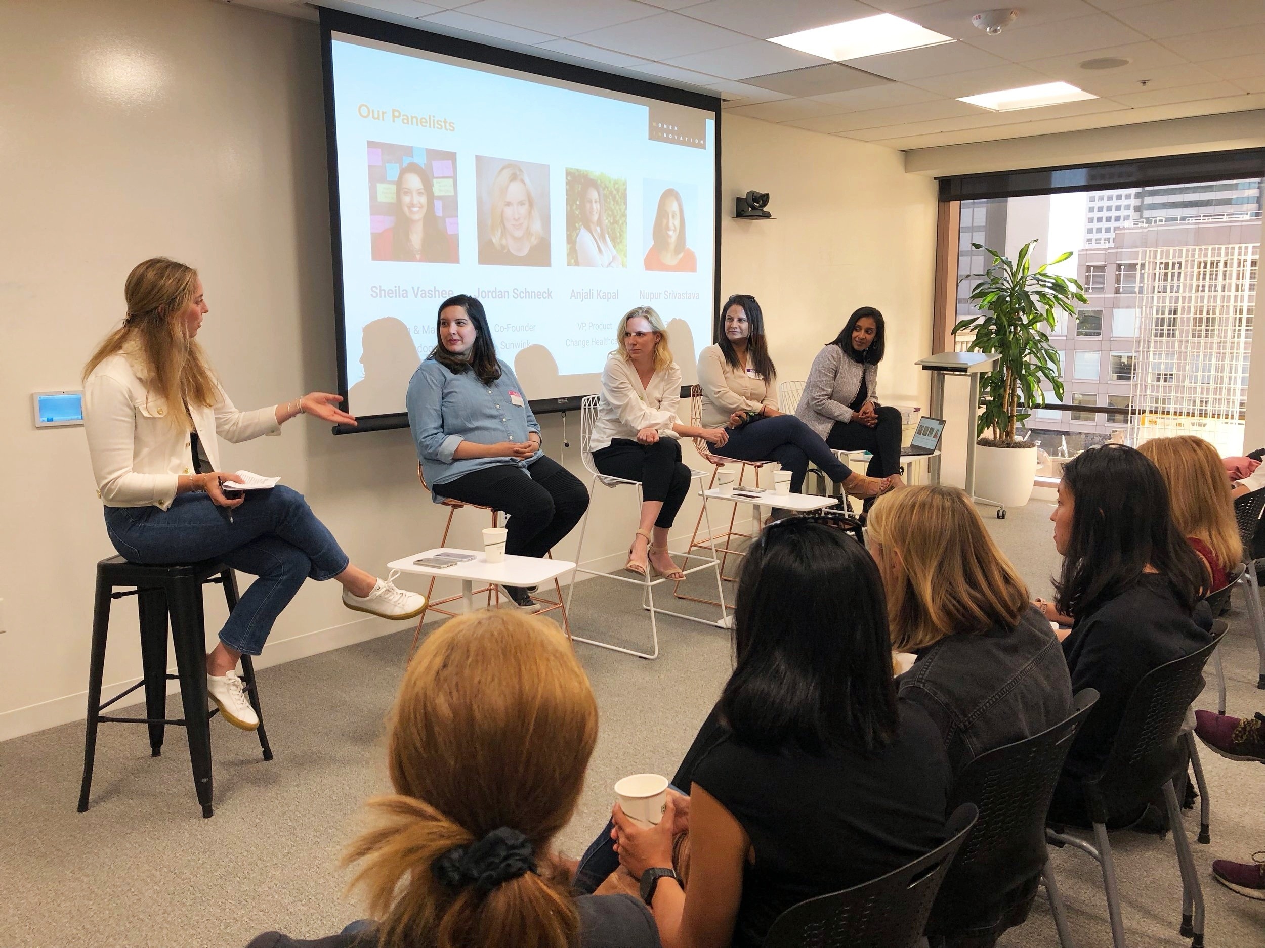 On July 24th, WIN SF collaborated with our friends at Circle of Intrapreneurs and Change Healthcare on designing an event to help our community innovate through highly regulated industries. The event, hosted at Stitchfix, featured a panel of four trailblazing women who are tackling innovation head on in some of the most highly regulated industries. The panel featured Sheila Vashee, VP of Growth & Marketing at Opendoor, Jordan Schneck, CMO and co-founder of Sunwink, Anjali Kapal, VP of Product Management at Change Healthcare, Nupur Srivastava, VP of Product at Grand Rounds, and was moderated by Annie Zaro, Chapter Co-founder and Lead at Circle of Intraprenuers.